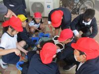 今年は夏の猛暑によりいもの生育がうまくいかず、木陰になる畑に植えられていた苗が育ち、そこのイモを掘りました。思いのほか大きく育っていたサツマイモに1年生は悪戦苦闘。学校主事の先生も手伝ってくださり、やさしくやさしく掘り進めて収穫しました。昨年はお世話しすぎて収穫が少なく、今年は猛暑に勝てませんでした。作物を育てることは本当に難しいです。