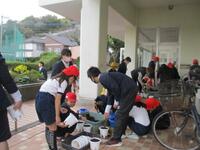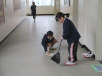 最後に,下校前に大掃除を行いました。寒い中でしたが,子供たちはお世話になった校舎内外を時間いっぱいきれいにしていました。