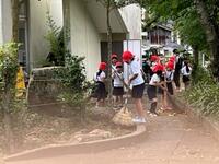 朝のボランティア。ホーキーズや運動場の草抜きをしています。