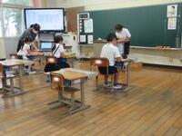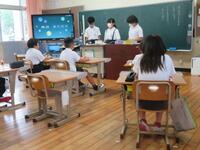 6年生の修学旅行に向けて学習が進んでいます。9月12日(火)、連合として一緒に行く都呂々小学校の6年生とオンライン学習を行いました。自己紹介から始まり、緊張した面持ちでのぞんでいました。自己紹介の後はフリートークで、今熱中していることや担任の先生のことなどで話が盛り上がりました。修学旅行当日まで事前学習を重ねて、有意義な旅行となるよう取り組んでいきます。