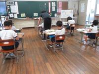 本校には月1回毛筆指導してくださる先生が来校されます。もう二十数年続けていただております。私たち教員も先生が言われることや子供に向き合う姿勢など勉強になります。子供たちも先生のアドバイスで字の形が整ってきます。授業の始めは学習する時について気をつけるところを分かりやすく教えていただきます。そして、子供たちは、手本をよく見て、気持ちを整えて1時間頑張っています。
