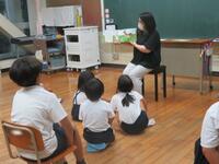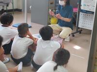 今月は心臓のひみつについてのお話でした。人間にとって心臓は生きていく上で大事な臓器であるため、その仕組みや働きを知ることは自分の生活や食べ物などを考えていくことにつながります。知らなかったことも多かったようで、くいいるように話を聞いている子供たちです。お話の後には、聴診器を貸してくださり、自分の心臓の鼓動を聞くことができました。