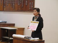 認知症とはどのようなものか、認知症になった人はどのような言動をするのか、そのときどのような関わりをするとよいのかなどを、スライドを使って詳しく教えていただきました。