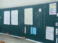 休み時間等に教室を回っていると、低学年の子どもたちから「校長先生、ちょっと待ってください。これ、あげます。」と折り紙や紙に描いた絵をよくもらいます。子どもたちからもらったものは、校長室のロッカーに飾るようにしていますが、張る場所がなくなってきました。どれも一生懸命に作ってくれたことが分かりますし、似顔絵などはよく似ています。「校長先生、おみくじをあげます。」と渡されたので見てみると「あたり!」と書いてありました。子どもたちの優しい心遣いが伝わり、有り難くいただきました。新たな置き場所を作らなければと思っています。