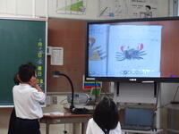 2年生の生活科の授業で、グループに分かれて、身近な生きものについて調べる学習を行っていました。図鑑などを使って調べ、まとめたことを発表するので見に来てほしいとお願いがありましたので、喜んで参加させてもらいました。トンボやカニ、バッタ、ダンゴムシなど、子どもたちが興味のある生き物について発表してくれました。また、発表の途中でクイズを出したり、生き物の体を組み立てるパズルを提示したりと、それぞれのグループが工夫を凝らした発表をしていて、大変感心しました。