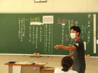 5年生の国語の授業を、苓北町学校教育指導員の髙木先生に参観していただきました。昨年度までの複式学級での学びを生かし、単式の学級となった本年度も、学習リーダーの指示を聞きながら、自分たちで学習を進めていました。教科書を読む姿勢や友達の発表に対する反応、グループ活動での話し合いの様子等、学びに向かう姿勢をたくさんほめていただきました。学習のめあてに対して、教科書をしっかりと読みながら、自分たちの力でまとめようとがんばっていました。また。学習の振り返りでは、自分で意見文を書くときに大切にしたいことを発表していて、「学びに向かう力」の向上を感じました。