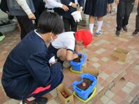 今年は夏の猛暑によりいもの生育がうまくいかず、木陰になる畑に植えられていた苗が育ち、そこのイモを掘りました。思いのほか大きく育っていたサツマイモに1年生は悪戦苦闘。学校主事の先生も手伝ってくださり、やさしくやさしく掘り進めて収穫しました。昨年はお世話しすぎて収穫が少なく、今年は猛暑に勝てませんでした。作物を育てることは本当に難しいです。