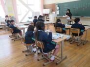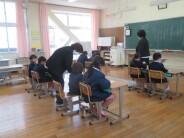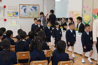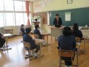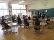 続いて教室に戻って、学級での最初の勉強です。6年生教室からまわりました。