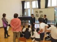 先生方と初めて会う子供たち。気になってしょうがないようでしたので、3分ほど先生方の顔を見てもらいました。先生方一人一人からの挨拶です。
