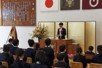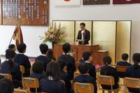 校長式辞。新1年生の皆さんに2つのお願いをしました。