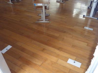 ソーシャルディスタンス、子どもたちが意識できるように床にカードが貼り付けてあります。