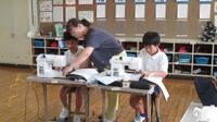 6年生の家庭科でミシンの操作を含め、布で作る活動を行っています。
