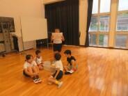 まず、全員で集まり、始めの会を行いました。その後、班に分かれて自己紹介です。