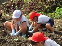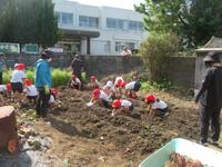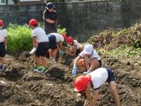 10月20日(月)1・2年生がサツマイモの収穫を行いました。本当は学校園で育てていた芋があったのですが、今年は暑さに負けてしまい、苗が育ちませんでした。残念で仕方ありません。