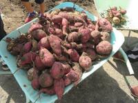 さあ、芋を掘ります。掘り始めて1分も経たないうちに、「あったあ」の声。掘り進めていくと、とっても大きくそだっている芋がいくつもありました。