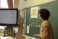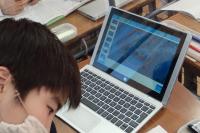 4年生の社会で『わたしたちの県のまちづくり』という単元があります。その中の「自然を生かしたまちづくり」という学習で、天草の崎津地域の様子から気が付いたことをタブレットを使って紹介していました。その様子を見ていたのですが、子供たちが上手にタブレットを扱い、写真を切り替え、その場でタッチペンを使って書き込みをしながら説明していました。私が学級担任をしていた頃は、資料を印刷して配付し、書き込みをさせていました。印刷も今のように鮮明ではなく、白黒でした。また、ペンで書き込んでしまうと修正ができませんし、資料を綴るファイルも必要でした。資料が多くなると、整理するのが大変でした。タブレットを使うと、書いたり消したりするのも自由自在ですし、保存さえしていれば、次の時間にすぐ振り返りができます。