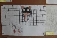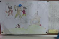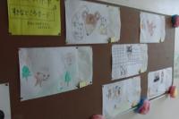 1年生の国語で、教材「たぬきの糸車」を使い、文章の中から自分のすきな場面を見つけるという学習がありました。単元の最後に自分の気に入った場面の文を写し、その様子が分かるように想像した絵と言葉を書いていました。見せてもらうと、すきな場面が一人一人様々であると感心すると同時に、その場面の様子がよく伝わる個性的な絵を描いていて、ついつい見入ってしまいました。このような子供らしい豊かな発想を大切に伸ばしていきたいと思いました。