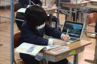 すべての教室の黒板に子供たちを迎えるメッセージが担任から書かれていて、温かい雰囲気の中で新学期をスタートさせることができました。始業式は、これまで通りリモートで行いました。