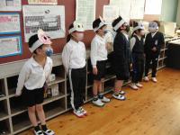 校内でお別れ会、縦割り班によるオリエンテーションを、新型コロナウイルス感染症防止対策を十分行った上で行いました。各学年から6年生へ感謝の気持ち伝える出し物が披露されました。6年生からも、感謝の気持ちを込めて言葉やダンスを表現しました。子供たちの笑顔溢れる、心に残るお別れ会になりました。