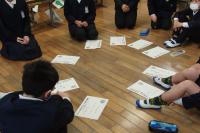 本日は、1年間の見守り活動を通して感じたことや、もうすぐ卒業する6年生との思い出などを話していただきました。また、6年生の代表から感謝の言葉を伝えました。