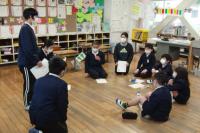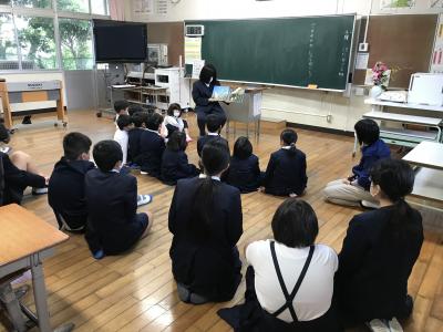 本校の子供たちの読書に対する関心を高め、読書の幅を広げる(学びに向かう力)ことを目的に、苓北町の読書推進ボランティアグループ「たんぽぽホール」の皆さま10名をお招きし、お話会を実施しました。本来であれば、全校児童を集めてお話を聞きたかったのですが、新型コロナウイルス感染症対策として、1・2年生のみ直接お話を聞き、3年生以上はリモートで視聴しました。昨年度は臨時休校のため、このお話会を実施することができませんでしたので、本年度は子供たちも楽しみにしていました。