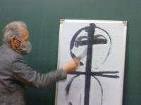 「校長先生、粘土を見てください。」私を見るなり、1年生の子供たちが集まってきました。クリスマスの食べ物などを粘土で作っているようで、どれも本当に良くできていました。ケーキも様々な形があって、子供たちが楽しみにしていることが分かりました。「校長先生、肉です。」と話してくれた子は、大きな粘土の塊に白い棒がさしてあります。担任と「ギャートルズみたいだね。」と笑いながら話しました。(皆さんは、ご存じでしょうか?)