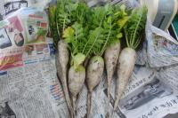 「校長先生、大根がとれました。食べてください。」と、職員室に持ってきてくれました。また、下校する時は、自分たちで収穫した大根を新聞紙にくるんで、大事そうに持って帰る姿が印象的でした。