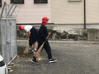 昨晩は、風が強く吹いていました。その影響からか、運動場や校舎周辺に大量のクスノキの葉が落葉していました。また、朝から風が強かったので、落ち葉がどんどん飛ばされています。「落ち葉の片付けが大変だ」と思っていると、高学年の子供たちが中心となり、片付けを始めました。大変寒い朝でしたが、一生懸命頑張ってくれている姿に、心が温かくなりました。ボランティアの心が少しずつ定着してきたようです。
