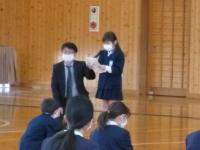 2学期の校内人権集会を行いました。今回も、新型コロナウイルス感染症対策としてリモートによる集会を計画しました。各学級で話し合って決めた「なかよし宣言」の取組の様子と3学期の目標を、代表者が発表してくれました。また、異学年による縦割り班で「さいころトーク」を行い、自分の頑張っていることや幸せと感じる時など、紹介し合っていました。今回の人権集会は、本校の学校運営協議委員であり、人権擁護委員でもある田中様をお招きし、人権集会の様子を見ていただくとともに、講評をいただきました。見ていただく中で、本校の子供たちの優しい言動を大変ほめていただきました。