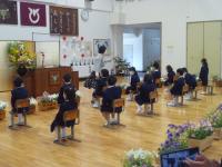 校庭の桜の花も咲きそろい、海からの風香る本日、保護者の方々の参列のもと、「令和二年度卒業証書授与式」を挙行しました。本校は少人数の学校であり、また大変広い体育館を有していることから、5年生のみ在校生を入れ、新型コロナウイルス感染症対策を十分行った上で実施しました。
