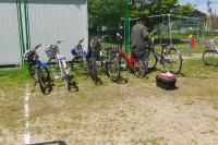 また、この交通教室に先駆けて、午前中に地域の溝上モータース様に自転車点検もしていただきました。