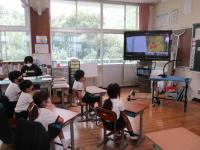 業間の時間を使って、これまで様々な作品展でよい成績を収めた子供たちの表彰をリモートで行いました。映像を通して先生から名前を呼ばれた子供たちは、各教室で返事をして立っていました。友だちからは、大きな拍手で讃えられていました。代表の子に賞状を渡しましたが、作品展に取り組んだすべての子を表彰したい気持ちでいっぱいでした。みんな本当によく頑張りました。