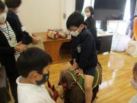 お話会では、絵本の読み聞かせだけでなく、手作りの人形劇も見せていただき、子供たちもお話の世界に引き込まれていました。お話会が終わった後も、道具を触らせていただいたり、たんぽぽホールの皆さんと会話したりと、充実した時間を過ごすことができました。