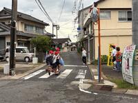 元気のよいあいさつと、交通安全に気をつけて登校しています。