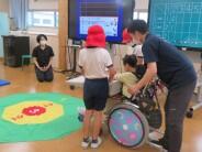 なかなか真ん中の「3点」をとるのが難しかったようです。でも、「普段小学部の子供たちだけでゲームをするよりは、今日がとっても楽しそうだし、笑顔がたくさん見られます」と、言われました。