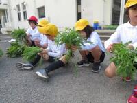 11月29日(水)1・2年生が育てていた冬野菜を収穫しました。ニュースでも話題になっていますが、今年は気候が暖かいうえに、1・2年生の献身的なお世話のお陰で、例年よりどの野菜も大きく育っています。葉や株ごとに分けて持ち帰ってもまだたくさんあります。畑にはまだまだ野菜が成長中。どのくらい大きくなるでしょうか。そしてご家庭でどのようなおかずになるのでしょうか。