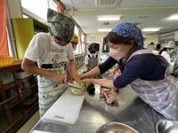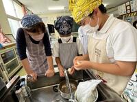 今回、2学年同時に調理実習を行うには、安全面や見守りが不可欠なため、学習支援ボランティアさんのお力を借りることができました。ボランティアの方の教えもいただきながら、楽しく調理ができました。