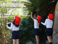 校長室の窓から、2年生がタブレット端末を持って何やら写真を撮っている様子が見えました。1年間の振り返りの学習をしていたようですが、春を感じるものを見つけていたようでした。玄関横には、今年もツバメの姿が見られるようになりました。昨年まで作っていた巣をのぞきには来ていますが、その中に入るまでには至っていません。ツバメが巣に入るところをねらっている子もいましたが、「ツバメが入らないから、撮れません。」と話してくれました。サクラの木のそばでは、丸く大きくなったつぼみを撮影している子もいました。