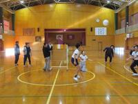 6年生体育「ネット型ゲーム」お家の方と対抗戦です。