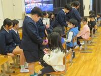 「今日は、新1年生の体験入学がありました。知っている子達もいました。最初、自こしょうかいはきんちょうしたけど、いっしょに遊んでいるうちに、だんだん話せるようになったのでよかったです。4月は、6年生として、しっかり1年生をサポートしていきたいです。あと、最高学年になるから、1年だけじゃなく、ほかの学年のお手本になれたらいいなと思いました。」