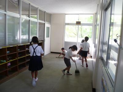 6年生の掃除場所を各学年が争うように頑張って掃除していました。