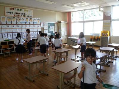 修学旅行で6年生不在の中、業間の時間に、各学年で仕事を分担し、
