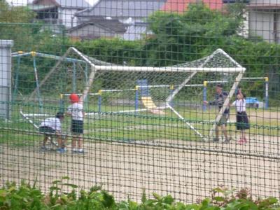 最上級生の5年生は,運動場のサッカーゴール撤去、