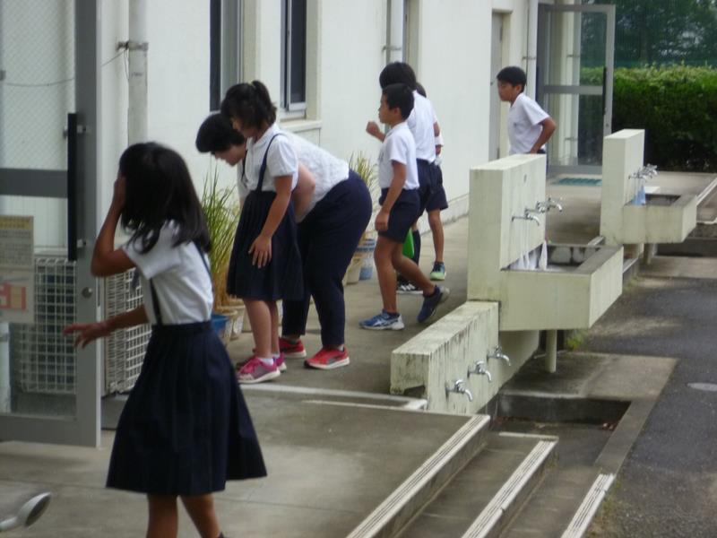 みんなで台風対策・・・6年生も元気に帰ってきました。