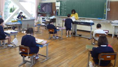 2年生、4年生では家庭学習の課題の答え合わせ・解説が行われていました。