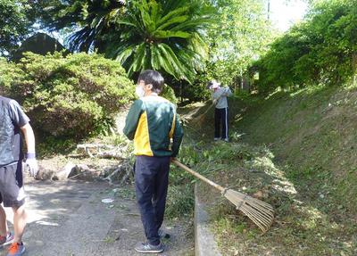 休日には、地域推進員の錦戸さが、職員駐車場の植えこみの木を切ってくださり、見通しがよくなりました。