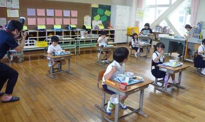 町の広報課の方が1年生の給食の様子を取材に来られました。