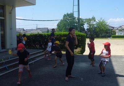 シャボン玉遊びが終わると、次は水鉄砲遊び。
