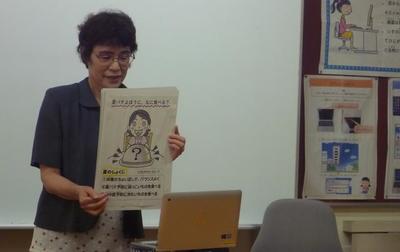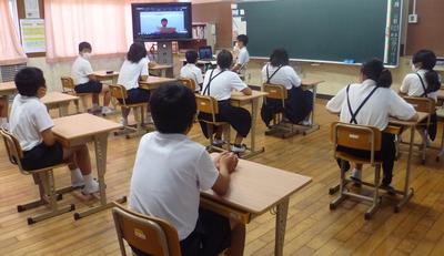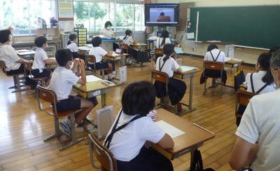 夏休みを健康に過ごすために、夏の食事・睡眠・入浴・水分補給について、クイズを交えながら子どもたちに考えさせていきました。