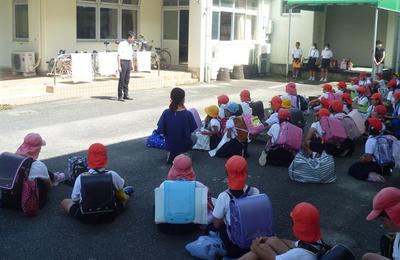「自分の命は自分で守る」ということを中心に、①海や川での危険から身を守るために・・・②道路などでの危険から身を守るために・・③熱中症・コロナ・タブレット等かの危険から身を守るために・・・の3点について話されました。